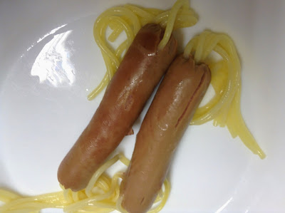 Salsichas Divertidas com Esparguete